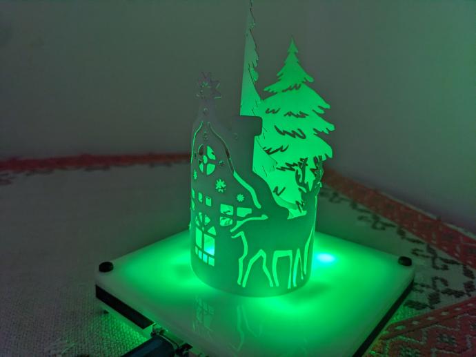 In this session, you’ll build a glowing spiral paper lamp with a square base. From the center of the base, a delicate paper spiral rises upward, featuring intricate laser-cut designs of reindeer, snowflakes, cozy Christmas houses, and evergreen trees. Inside the base, a hidden LED strip casts a soft, diffused light that beautifully illuminates the spiral from below.